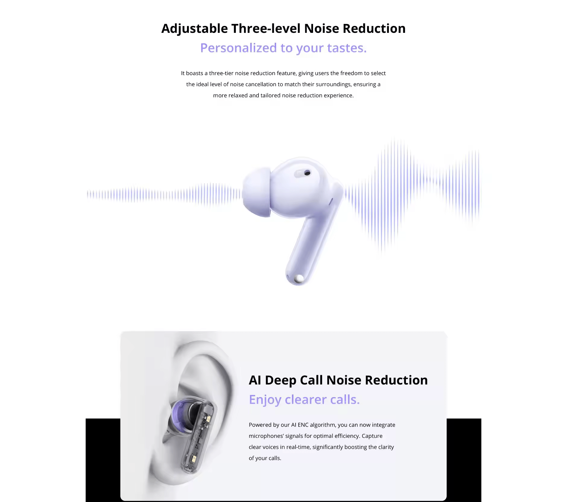 Noise reduction function:transparent Three-level manual noise reduction switching